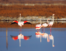 火烈鳥漫步山西鹽湖